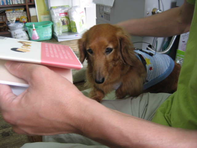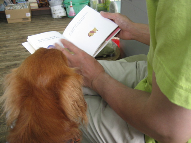 待ち時間、パパは病院においてある本を読んでいると、グーさんも一緒に読んでいる!?