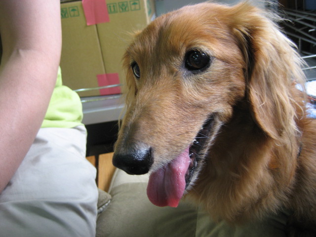 会陰ヘルニアであることは数年前から伝えられており、今回はそのヘルニア状態の確認のための診察。