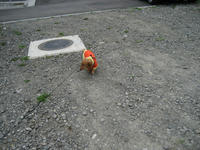 これは、砂利の上を歩きたくなく立ち止まっているグーさんです。
